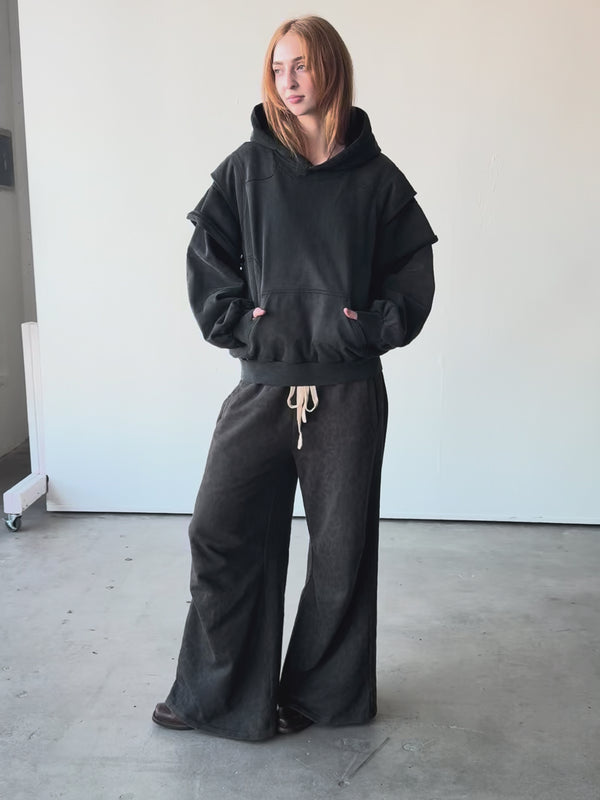 BAGGY, FULL-LENGTH FLARE, FEATURING SIGNATURE DARTED KNEES WHICH EXTEND KNEE BASE OUTWARDS FOR A UNIQUE FIT.
