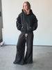 FEATURES A SUBTLE BLACK PANTHER PRINT ACROSS THE ENTIRE GARMENT, DARTS ALONG BACK PANEL FOR DETAIL, FOUR DEEP WELT POCKETS, AND AN ELASTIC INLAYED WAISTBAND FOR COMFORT.